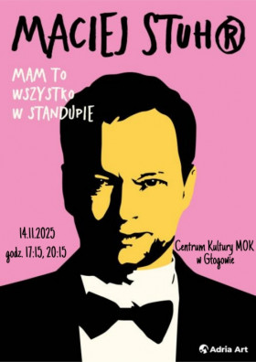 Maciej Stuhr powraca na scenę kabaretową w wielkim stylu! Jego najnowszy program, czyli „Maciej Stuhr: MAM TO WSZYSTKO W STANDUPIE!”, to humor na najwyższym poziomie, pełen błyskotliwych, inteligentnych spostrzeżeń na temat rzeczywistości. Czego możemy się spodziewać? Co kryje się za intrygującym tytułem? Jak to jest mieć wszystko w stand-upie? Na pierwszy plan wysuwa się znakomita rozrywka oraz przyjazna i radosna atmosfera, którą jak nikt inny Maciej Stuhr potrafi wytworzyć na scenie i widowni. 30 lat doświadczenia estradowego nie pozostaje bez znaczenia, a jego powrót do zabawy z publicznością jest pełen energii i świeżości. Maciej Stuhr, czyli człowiek orkiestra, który oprócz aktorstwa filmowego i teatralnego upodobał sobie reżyserowanie, pisanie felietonów, działalność dydaktyczną i wiele innych… Jak poradzi sobie w nowej roli? Przekonaj się, kupując bilety na najnowszy stand-up Macieja Stuhra!