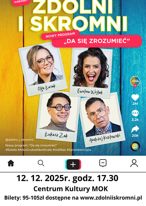 Olga Łasak, Ewelina Wojtak, Andrzej Kozłowski i Łukasz Żak - ta wesoła banda znana z Tik-Toka, Facebooka, YouTube’a i telewizji, rusza w premierową ogólnopolską trasę. Zaczęli od milionów wyświetleń w Internecie, dodali do tego tysiące sprzedanych biletów na swoje występy, a teraz będą w Waszym mieście!