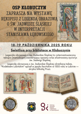 18-19.10.2025KŁOBUCZYNWystawa rękopisu z legendą obrazową o św. Jadwidze Śląskiej w interpretacji Stanisława Łękowskiego.