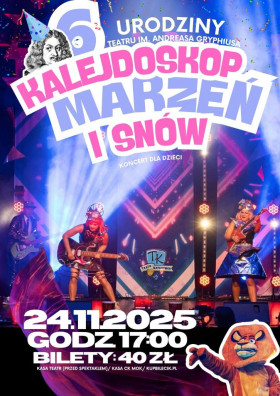 Miejscowość: Głogów Miejsce: Teatr im. Andreasa Gryphiusa, Rynek 8 Data rozpoczęcia: 24.11.2025 17:00:00 Data zakończenia: 24.11.2025 19:00:00 Organizator: Centrum Kultury Opis wydarzenia: „KALEJDOSKOP MARZEŃ I SNÓW” 24.11.2025 r. godz. 17:00 Bilety: 40 zł Bilety dostępne w kasie Teatru - godzinę przed koncertem (tel. 783 403 503), w kasie CK oraz na kupbilecik.pl Koncert Piosenek z Bajek Disneya. Daj się porwać w niezwykłą podróż po najpiękniejszych bajkach świata! Wraz z muzyką przeniesiemy się do mroźnej krainy Anny i Elzy, odkryjemy zaczarowany świat Pocahontas i zanurzymy się w podwodnym królestwie Małej Syrenki. Spotkamy odważną Vaianę, młodego Herkulesa, buntowniczą Meridę i czarującego Aladyna – a każdy z nich opowie nam o marzeniach, przyjaźni i odwadze. Specjalnie zaaranżowane utwory, autorskie dialogi i zachwycająca choreografia sprawią, że koncert stanie się spójnym i magicznym widowiskiem muzycznym dla całej rodziny! Barwne kostiumy, imponująca scenografia, gra świateł i efekty specjalne sprawią, że przeniesiesz się wprost do świata Disneya. A podczas występu pojawi się wyjątkowy gość – Król Lew! Czeka Was mnóstwo radości i wspólnej zabawy – podczas finału część publiczności wejdzie na scenę, by z artystami stworzyć wyjątkową dziecięcą orkiestrę! Muzyka to najlepsza forma nauki i radości – rozwija wyobraźnię, wrażliwość i budzi pozytywne emocje. Kto wie, może to właśnie tu zacznie się muzyczna przygoda Twojego dziecka. |