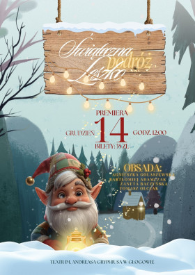 Kolejna świąteczna odsłona naszego spotkania już niebawem! Spektakl "Świąteczna podróż Leszko" to barwna opowieść pełna muzyki, śmiechu i wzruszeń. Opowieść, która przypomina, że czasem wystarczy jedno spojrzenie, jedno słowo, jeden gest... by poczuć, że magia naprawdę istnieje. Razem poczujmy ten świąteczny czas w Teatrze! Świetna zabawa gwarantowana a piosenki towarzyszące w spektaklu nastroją nas na spotkanie z najprawdziwszym Świętym Mikołajem. Święty Mikołaj, Tosia, Zosia i niesforny chochlik Leszko czekają na Was! Nie każda magia ma brodę i czerwony kubrak. Czasem przychodzi niepostrzeżenie - z wiatrem, z melodią, albo z czyimś śmiechem. A czasem trzeba wyruszyć bardzo daleko, żeby odnaleźć ją tuż obok siebie. Gdy cały świat śpiewa świąteczne piosenki, a w powietrzu czuć zapach piernika, pewien chochlik ma nie lada zagadkę do rozwiązania. Zastanawia się, gdzie naprawdę mieszkają Święta? Leszko nie planował tej podróży. Ale kiedy zgasło światło, a dzwoneczki ucichły, coś kazało mu ruszyć za głosem, który brzmiał jak... echo Świąt. W śnieżne pustkowia, wśród lampionów i palm, aż wreszcie tam, gdzie pachnie piernikiem i brzmi kolęda. Ale czy znajdzie to, czego szuka? Dokąd go zaprowadzi? "Świąteczna podróż Leszko"