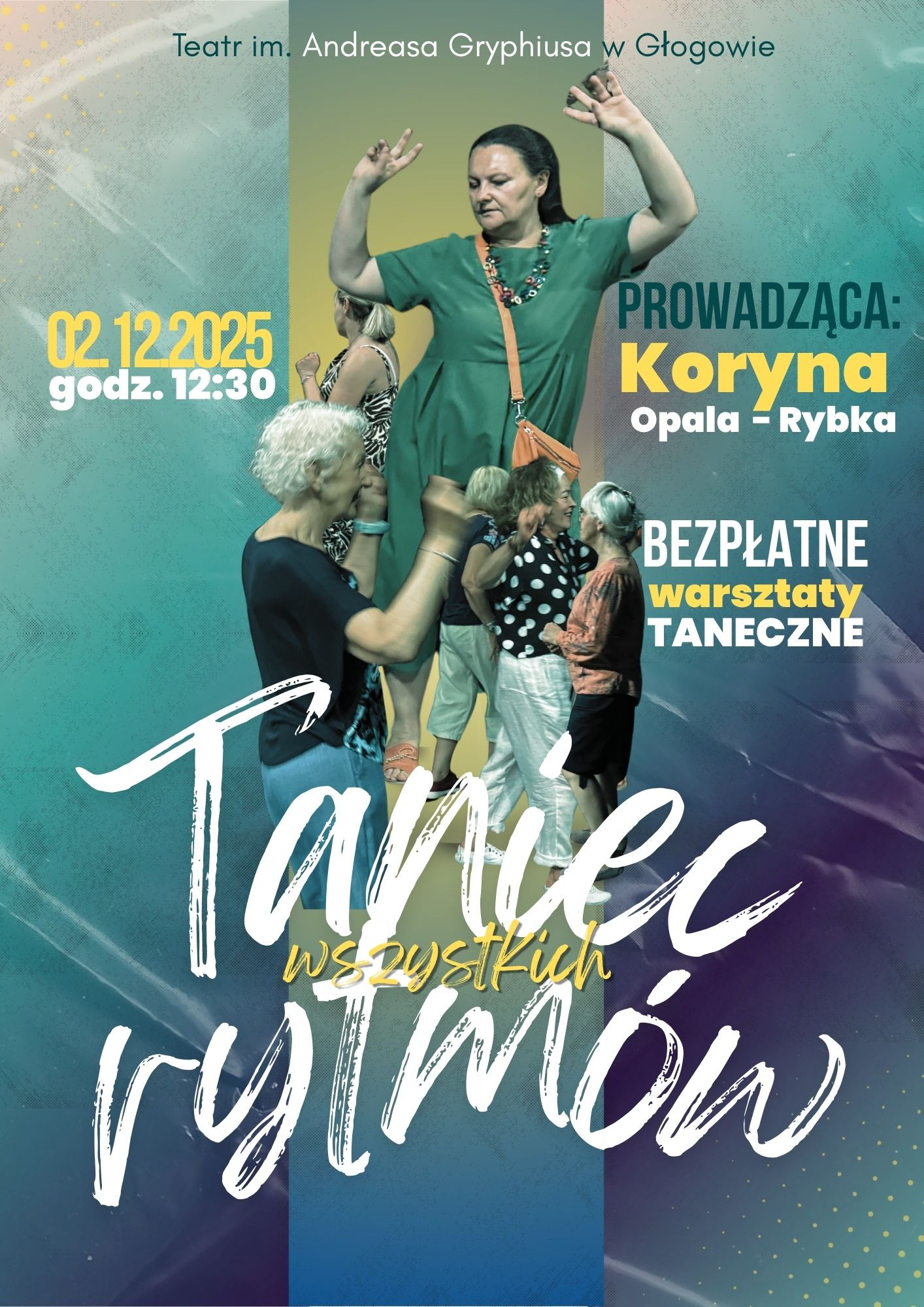 Zapraszamy na warsztaty „Taniec wszystkich rytmów”, które odbędą się 02.12.2025 r. w Teatrze im. Andreasa Gryphiusa w Głogowie. Pod okiem Koryny Opali-Rybki odkryjesz radość tańca w różnorodnych rytmach, niezależnie od poziomu zaawansowania. To świetna okazja, by poczuć swobodę ruchu, spotkać ciekawych ludzi i spędzić dzień w pozytywnej atmosferze. Przyjdź, zatańcz i pozwól porwać się muzyce!