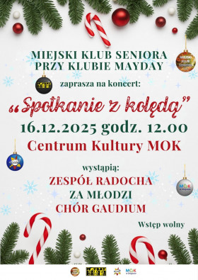 | Miejscowość: Głogów Miejsce: Miejski Ośrodek Kultury w Głogowie Data rozpoczęcia: 16.12.2025 12:00:00 Data zakończenia: 16.12.2025 14:00:00 Organizator: Klub Mayday Głogów/Miejski Klub Seniora przy Klubie Mayday Opis wydarzenia: Zapraszamy wszystkich Seniorów z Głogowa na wyjątkowe Spotkanie z Kolędą – wydarzenie, które wprowadzi Was w najpiękniejszy, świąteczny nastrój. Już 16 grudnia o godz. 12.00 w sali widowiskowej Miejskiego Ośrodka Kultury przy Rondzie Konstytucji 3 Maja 2 rozbrzmią najpiękniejsze polskie kolędy i pastorałki. |