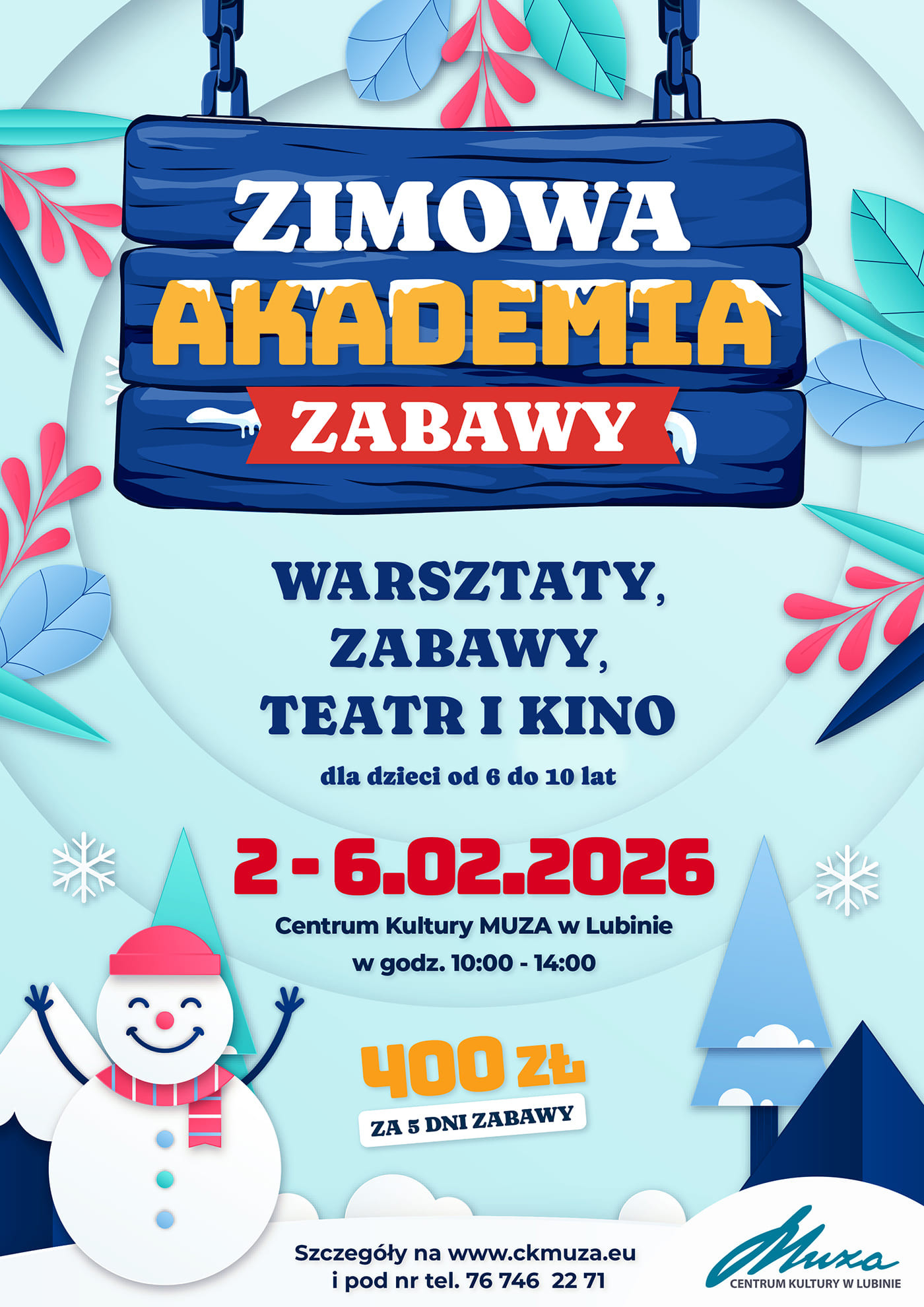 Karta zgłoszenia i Regulamin – www.ckmuza.eu (zakładka: Imprezy/Zimowa Akademia Zabawy)