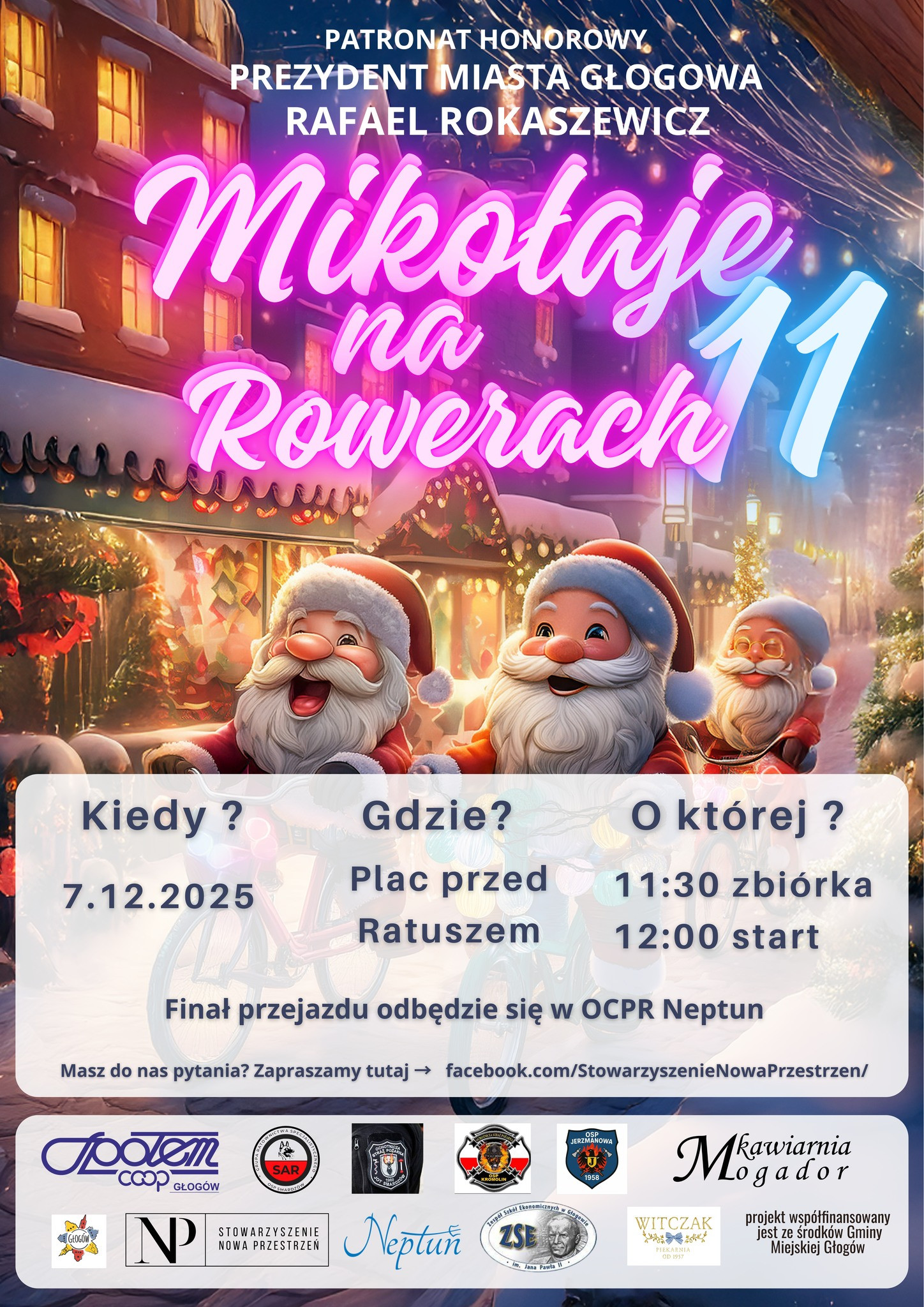 Przybywajcie w czapkach, pelerynach, brodach… a rowery niech lśnią, świecą i dzwonią jak nigdy! Niech świąteczny klimat będzie tak intensywny, że nawet sanie Świętego zaparkują obok z zazdrości.