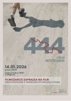 | Miejscowość: Głogów Miejsce: Centrum Kultury MOK w Głogowie Data rozpoczęcia: 14.01.2026 18:00:00 Data zakończenia: 14.01.2026 21:00:00 Organizator: Centrum Kultury MOK w Głogowie Opis wydarzenia: FILMOŻARCIE: "444" i spotkanie z twórcami 14.01 2025 godz. 18:00 Centrum Kultury MOK bilety: 20 zł W ramach pierwszego w 2026 roku FILMOŻARCIA, zapraszamy na film dokumentalny i spotkanie z bohaterem produkcji i reżyserem. Opis filmu: Czy można biec bez przerwy setki kilometrów, nieprzerwanie stawiać czoła zmęczeniu, warunkom atmosferycznym i presji psychicznej? Łukasz Wróbel, ultramaratończyk zmagając się z osobistymi słabościami i przeciwnościami losu, pokazuje, że siła tkwi nie tylko w ciele, ale przede wszystkim w umyśle. Film dokumentuje próbę pobicia rekordu biegu po Głównym Szlaku Sudeckim, podjętą przez Łukasza w 2024 roku. 444 to opowieść o pasji, odwadze i determinacji, ale także o sile, którą daje rodzina i przyjaciele. Zapraszamy na film dokumentalny Krzysztofa Jagiełki, a po seansie na spotkanie z twórcą i bohaterem filmu, Łukaszem Wróblem. |