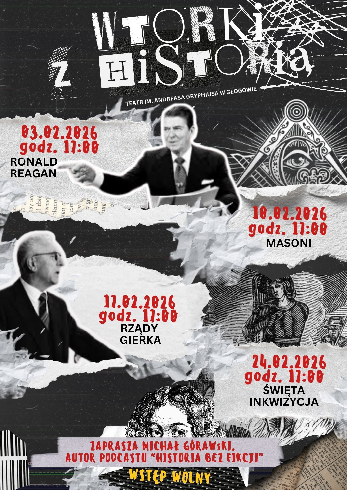 | Miejscowość: Głogów Miejsce: Teatr im. Andreasa Gryphiusa, Rynek 8 Data rozpoczęcia: 24.02.2026 17:00:00 Data zakończenia: 24.02.2026 20:00:00 Organizator: CENTRUM KULTURY W GŁOGOWIE Opis wydarzenia: Zapraszamy na kolejną odsłonę cyklu „Wtorki z historią” – spotkań, podczas których cofamy się w czasie, by przyjrzeć się postaciom, wydarzeniom i zjawiskom, które ukształtowały świat, w jakim dziś żyjemy. W lutym porozmawiamy o polityce, ideologiach, tajemnicach i religii, o tematach, które do dziś wzbudzają emocje i kontrowersje. 24 lutego – Święta Inkwizycja, godz. 17:00. Inkwizycja to najczęściej krytykowana instytucja w dziejach Kościoła. Jak zaczęła się jej historia? Wstęp wolny |