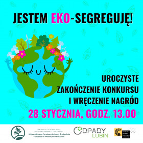Wydarzenie będzie podsumowaniem konkursu skierowanego do najmłodszych mieszkańców miasta, promującego postawy proekologiczne, kreatywność oraz świadome podejście do segregacji odpadów. Konkurs został zrealizowany przez Miejskie Przedsiębiorstwo Wodociągów i Kanalizacji w Lubinie oraz Centrum Działań Twórczych w Lubinie, a dofinansowany przez Wojewódzki Fundusz Ochrony Środowiska i Gospodarki Wodnej we Wrocławiu.