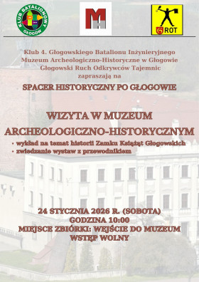 Wizyta w Muzeum Archeologiczno-Historycznym, wykład na temat historii Zamku Książąt Głogowskich, zwiedzanie wystaw z przewodnikiem, wstęp wolny