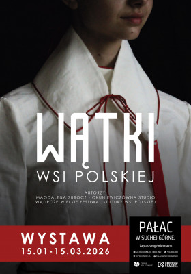 Miejscowość: Sucha Górna Miejsce: Pałac w Suchej Górnej Data rozpoczęcia: 22.01.2026 07:00:00 Data zakończenia: 15.03.2026 15:00:00 Organizator: Centrum Kultury w Polkowicach Opis wydarzenia: Wątki Wsi Polskiej – fotografia, która zatrzymuje w czasie|wstęp bezpłatny