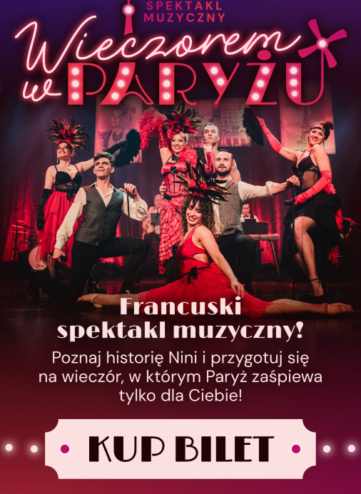 | Miejscowość: Głogów Miejsce: Centrum Kultury MOK Data rozpoczęcia: 01.03.2026 15:00:00 Data zakończenia: 01.03.2026 20:00:00 Organizator: Miejski Ośrodek Kultury w Głogowie Opis wydarzenia: 01. marca 2026r. godz. 15:00 i 18:00 Centrum Kultury MOK w Głogowie WIECZOREM W PARYŻU - spektakl muzyczny Bilety: https://bilety.musiceverywhere.pl/.../id/47158/city_id/275 WIECZOREM W PARYŻU – koncert, który zabierze Cię w sam środek paryskiej nocy, tej najprawdziwszej, z legend kabaretów, tajemnic ulic i namiętności. WEJDŹ DO ŚWIATA MOULIN ROUGE Na scenie pojawia się ona: Nini Legs-in-the-Air – legendarna kurtyzana, dawna gwiazda Moulin Rouge, która nigdy nie pozwoliła, aby blask jej sławy przygasł. Siedzi przy toaletce w peniuarze, z papierosem w dłoni, otoczona bibelotami, piórami i kurzem minionych dni. Czy jej czas przeminął? Może. Ale dla Nini ten wieczór to okazja, by jeszcze raz wywołać dawne czasy, kiedy paryskie noce były dłuższe, a historie pełne obietnic. Z ironicznym uśmiechem rzuca wyzywające spojrzenia ku widowni, zapraszając na wieczór w Paryżu, jaki znasz tylko z filmów i opowieści. MUZYKA NOCNYCH ULIC PARYŻA Ta opowieść to nie tylko wspomnienia – to także muzyka, która pulsuje rytmem francuskich nocy. Usłyszymy „Milord”, który prowadzi pełen pasji dialog z paryską ulicą, wyraziste „Non, je ne regrette rien” Édith Piaf, słodko-gorzkie „La vie en rose” oraz zmysłowe „Tango de Roxanne”. W każdym z tych utworów tętni życie, namiętność i odrobina melancholii – jakbyśmy sami błądzili po bulwarach i zaułkach Montmartre. PARYSKIE SNY I NIESPEŁNIONE TĘSKNOTY Wieczór rozwija się jak najlepszy spektakl. Z każdym kolejnym utworem Nini staje się bardziej pewna siebie, jak dawna gwiazda, która w brawurowym „Lady Marmalade”, staje na środku sceny – triumfująca i pełna blasku. Obok niej wokaliści i tancerze, a wokół pieśni o niespełnionej miłości, o żarze, który nigdy się nie kończy, i o życiu, którego się nie żałuje. WIECZOREM W PARYŻU To spotkanie z Paryżem pełnym magii, namiętności i wiecznie żywych historii. Zanurz się w świecie, gdzie puls miasta budzi się po zmroku, a każda nuta przesiąka pragnieniami sprzed lat. ZNAKOMICI ARTYŚCI Głosami paryskiej nocy są wspaniali artyści. W główną postać wcielają się polskie aktorki teatralne, m.in. Magdalena Smuk oraz Agnieszka Castellanos-Pawlak, które na co dzień można podziwiać na deskach Teatru Muzycznego w Gdyni czy Teatru Dramatycznego w Koszalinie. To właśnie one wraz z wybitnymi solistami i parą utalentowanych tancerzy przeniosą publiczność do świata kabaretów i klasycznych francuskich melodii. Tej nocy Paryż zaśpiewa dla Ciebie – i nie pozwoli o sobie zapomnieć. |