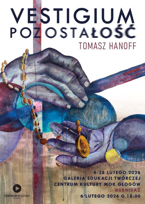 | Miejscowość: Głogów Miejsce: Centrum Kultury MOK Data rozpoczęcia: 06.02.2026 18:00:00 Data zakończenia: 06.02.2026 19:00:00 Organizator: Miejski Ośrodek Kultury w Głogowie Opis wydarzenia: Wernisaż: 06. lutego 2026r. godz. 18:00 Wystawa: 06 - 28. 02. 2026r. Galeria Edukacji Twórczej Tomasz Hanoff: VESTIGIUM-POZOSTAŁOŚĆ - wystawa interdyscyplinarna Vestigium – Pozostałość: Idea wystawy „Vestigium – Pozostałość” opiera się na refleksji nad śladem, jaki pozostawia po sobie człowiek, oraz na zatrzymaniu się w momencie uważnej obserwacji i wyobrażeń dotyczących tego, co przetrwa po naszym odejściu. Jest to naturalna kontynuacja i rozwinięcie wcześniejszego projektu „Monumenty”, jednak w nowej odsłonie artysta odważniej sięga po formę, intensyfikuje ekspresję malarską i poszerza zakres środków wyrazu. W prezentowanych pracach kluczowe znaczenie mają głębia i przestrzeń – zarówno w sensie formalnym, jak i symbolicznym. Artysta eksperymentuje z formą, proporcjami oraz wielowarstwową, często ukrytą symboliką, zapraszając widza do osobistej interpretacji i podróży w świat jutra – świat tego, co pozostanie, gdy człowiek zniknie z planety. Cykl „Vestigium” realizowany jest przy użyciu różnorodnych technik i materiałów. Istotnym elementem procesu twórczego stało się poszukiwanie nowych podłoży, często znalezionych i porzuconych – takich, które same w sobie niosą ślad ludzkiej obecności i konsumpcyjnego trybu życia. Naturalny len, pozostawione płyty meblowe czy fragmenty płyt OSB, niejednokrotnie odnalezione na śmietnikach, stają się nośnikiem obrazu i jednocześnie komentarzem do świata stopniowo ulegającego degradacji. Wystawa obejmuje zarówno ekspresyjne prace malarskie, jak i portret kreacyjny oraz fotografię inscenizowaną, które wspólnie budują narrację o przemijaniu, pamięci i materialnych pozostałościach ludzkiej działalności. „Vestigium” to zaproszenie do refleksji nad odpowiedzialnością, śladem i ciszą, jaka może nadejść po nas. |