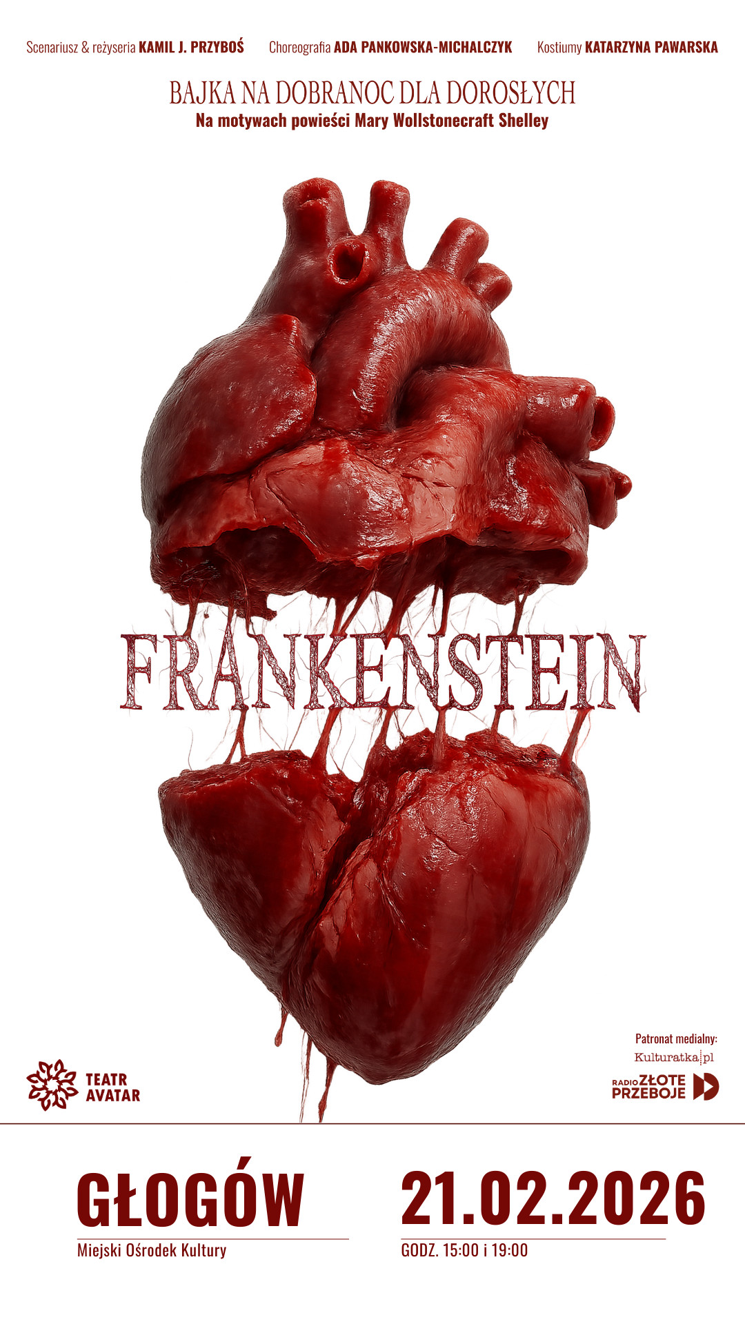 | Miejscowość: Głogów Miejsce: Miejski Ośrodek Kultury Data rozpoczęcia: 21.02.2026 15:00:00 Data zakończenia: 21.02.2026 21:00:00 Organizator: Teatr Avatar Opis wydarzenia: Już 21 lutego scena Miejskiego Ośrodka Kultury w Głogowie zamieni się w laboratorium emocji i wizualnych doświadczeń. Teatr Avatar, po sukcesie jesiennej trasy, przywozi do miasta swoją najnowszą produkcję – „Frankensteina”. To widowisko utrzymane w charakterystycznym języku Teatru Avatar, gdzie gra aktorska splata się z teatrem ruchu i bogactwem środków wyrazu, tworząc wyjątkowy organizm sceniczny opowiadający o istocie człowieczeństwa, samotności i odrzuceniu. Po premierze w październiku 2025 roku, w ciągu zaledwie miesiąca, spektakl obejrzało ponad 3 500 widzów. Rok 2026 zapowiada się jeszcze intensywniej – zespół Avatara wystąpi na największych scenach w kraju – odwiedzi 13 miast i zaprezentuje 26 spektakli, m.in. w Teatrze Muzycznym Capitol we Wrocławiu, CKK Jordanki w Toruniu, Terminalu Kultury Gocław w Warszawie czy Centrum Kongresowym ICE w Krakowie. Na mapie tourneé „Frankensteina” znalazła się także scena Miejskiego Ośrodka Kultury w Głogowie, na której spektakl zostanie wystawiony 21 lutego o godz. 15:00 i 19:00. Produkcja zespołu Avatara, która powstała pod przewodnictwem reżysera Kamila J. Przybosia, poszerza definicję tradycyjnej sztuki teatralnej. Emocje i napięcia przedstawienia wyrażone są nie tylko poprzez grę aktorską, ale także taniec, akrobatykę i efekty świetlne. Jak podkreśla jeden z widzów: Każdy ruch, gibkość ciał zasługują na najwyższą notę. Wielką przyjemnością było oglądanie tego cudownego widowiska. Do tego gra świateł i przekaz treści spektaklu zasługują na wielkie brawa. Dla tych, którzy jeszcze nie widzieli tej autorskiej adaptacji literackiej klasyki, zapraszamy na spotkanie ze sztuką, która przełamuje popkulturowe stereotypy i wraca do korzeni historii Mary Wollstonecraft Shelley. Bilety do świata piękna i mroku szybko znikają. Bilety dostępne są na stronie internetowej teatru: https://teatravatar.pl/kup-bilet/ |