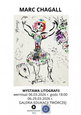 | Miejscowość: Głogów Miejsce: Centrum Kultury MOK Data rozpoczęcia: 06.03.2026 18:00:00 Data zakończenia: 06.03.2026 20:00:00 Organizator: Miejski Ośrodek Kultury w Głogowie Opis wydarzenia: Wernisaż: 6. marca 2026r. godz. 18:00 Wystawa: 6 - 29 marca 2026r. MARC CHAGALL - WYSTAWA LITOGRAFII “Uważam, że bez rycin i litografii, nad którymi pracowałem w pewnym momencie mojego życia, moje artystyczne doświadczenie byłoby niepełne, pomimo całej kolorowej palety, którą używam w malarstwie.” Tymi słowami Marc Chagall wprowadza do projektu kompletnego spisu własnego dorobku litograficznego, który przeprowadzony był przez André Saureta - francuskiego wydawcę, który blisko współpracował z artystą, a który uczestniczył w procesie wydawania wielu jego litografii. To dzięki Sauretowi i jego staraniom litografie Chagalla zostały udokumentowane i wydane w formie katalogów, które zawierały pełen zbiór litograficznych prac artysty wraz z odpowiednimi opisami, informacjami technicznymi i datami ich powstania. Katalogi te stały się ważnymi źródłami wiedzy dla kolekcjonerów, muzeów, a także badaczy, którzy chcieli zgłębić świat litografii tego artysty. Dzięki staraniom André Saureta, litografie Chagalla zyskały większą rozpoznawalność i szacunek w świecie sztuki, a oryginalne prace artysty zostały zachowane i docenione jako ważny element jego twórczości. Chagall nie byłby sobą, gdyby nie wspomógł tego projektu w sposób kreatywny, dając wyraz najlepiej sobie znanemu kunsztowi artystycznemu - tworząc 22 litografie. Dzięki próbie zilustrowania wszystkich własnych dotychczasowych poczynań, Chagall postanowił dać wydźwięk większości tematom, które poruszał w swoich pracach, a którymi są romantyzm, religia, baśnie i mitologia, cyrk, sztuka, pejzaż a także oniryzm. Prezentowana wystawa przedstawia pełny zbiór litografii, który stał się swego rodzaju twórczością artysty w pigułce, stanowiącą doskonały przegląd jego działalności artystycznej i podkreślenie jego największego atutu. Nie bez powodu Pablo Picasso powiedział, że kiedy zabraknie Marca Chagalla, to nikt na świecie nie będzie wiedział czym jest kolor. To właśnie ten aspekt jego prac odzwierciedla duszę artysty i tym samym uwrażliwia wszystkich odbiorców jego dzieł. "Jestem artystą i muszę malować to, co widzę w moim wnętrzu." - to właśnie te wnętrze i tego rodzaju kunszt artystyczny przedstawia wystawa litografii Marca Chagalla. |