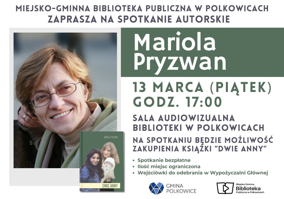 Serdecznie zapraszamy na wyjątkowe spotkanie autorskie z Mariolą Pryzwan, znaną biografistką i autorką książek poświęconych wybitnym postaciom polskiej kultury.