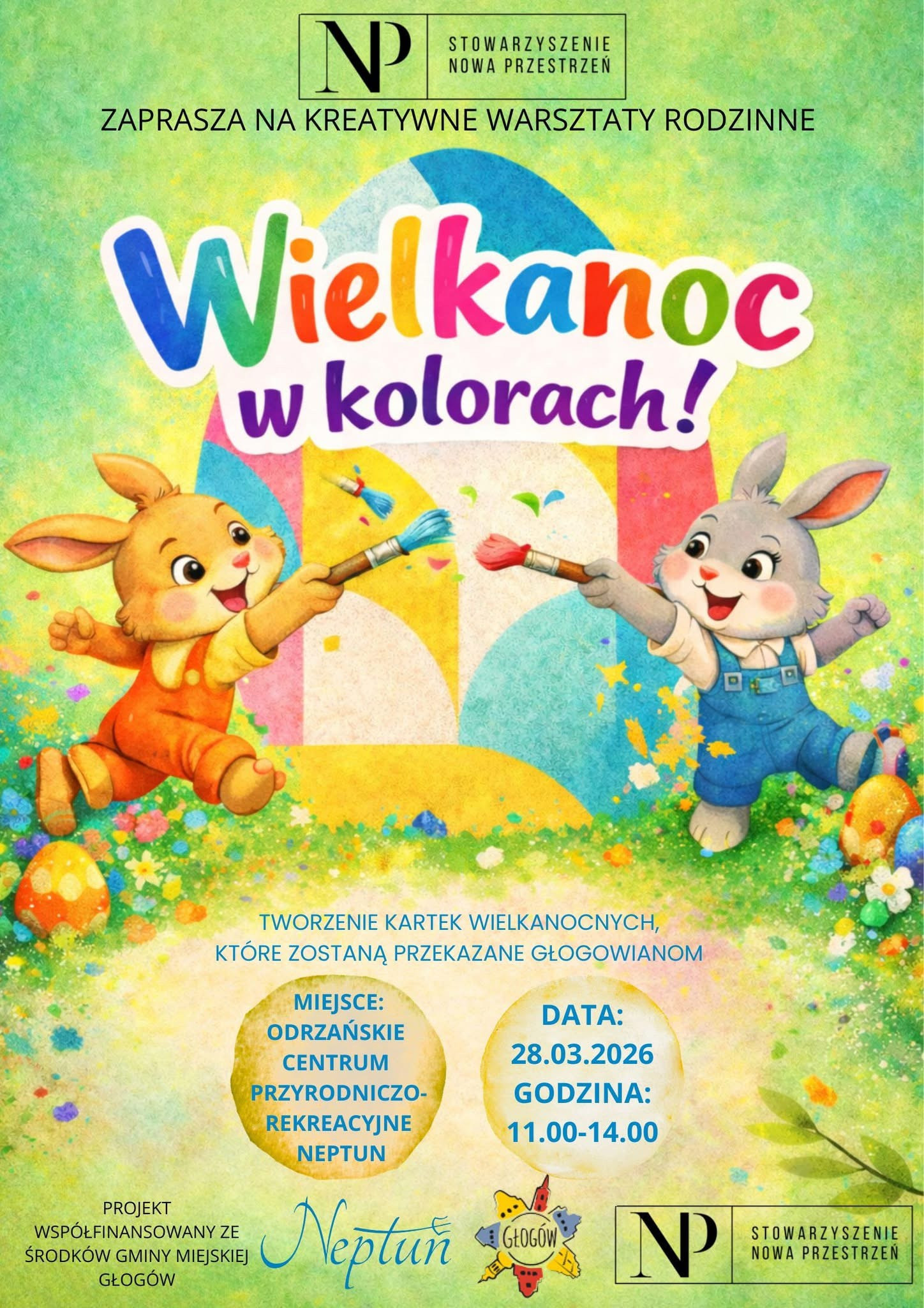 | Miejscowość: Głogów Miejsce: Odrzańskie Centrum Przyrodniczo Rekreacyjne NEPTUN Data rozpoczęcia: 28.03.2026 11:00:00 Data zakończenia: 28.03.2026 14:00:00 Organizator: Stowarzyszenie Nowa Przestrzeń Opis wydarzenia: Uwaga, kreatywne dusze! Zbliża się moment, w którym brokat przejmie kontrolę, klej wymknie się spod nadzoru, a stoły w Odrzańskie Centrum Przyrodniczo-Rekreacyjne Neptun… cóż, będą miały co wspominać Zapraszamy na warsztaty tworzenia kartek wielkanocnych, gdzie: kurczaki będą miały więcej osobowości niż niejedna gwiazda internetu zajączki okażą się podejrzanie urocze Nie trzeba mieć talentu – wystarczy chcieć się pobawić! My ogarniamy materiały, inspiracje i dobrą atmosferę. Wy przynosicie uśmiech i gotowość na kreatywny chaos Dla małych i dużych – idealna okazja, żeby stworzyć coś własnoręcznie (i być z tego dumnym… albo przynajmniej się pośmiać ) Wpadajcie – będzie kolorowo, świątecznie i bardzo wesoło! Kto przyjdzie, ten wróci z kartką… i prawdopodobnie odrobiną brokatu na zawsze |