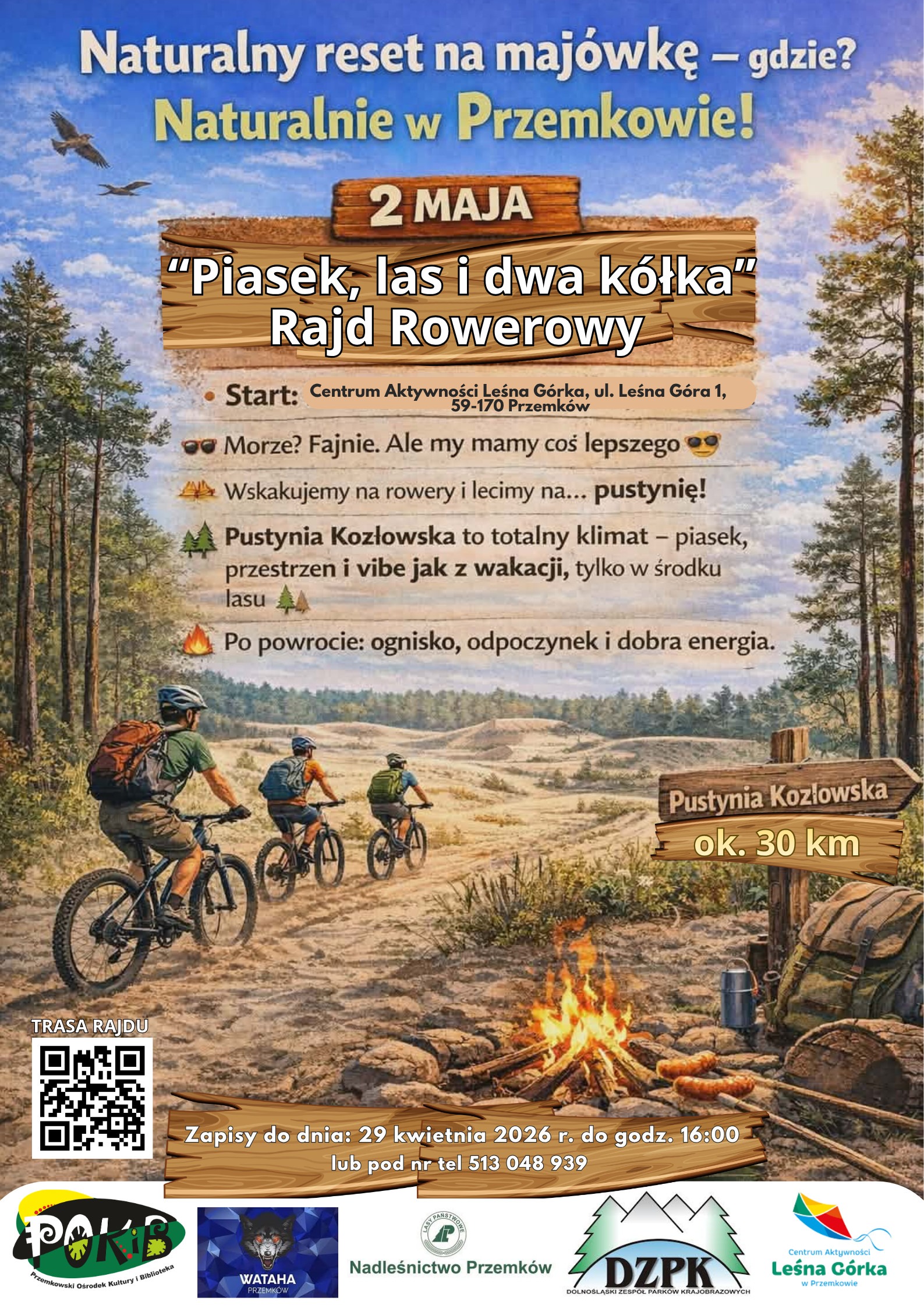 2 maja →(10:00) – "Piasek, las i dwa kółka" Rajd Rowerowy (ok. 30 km)