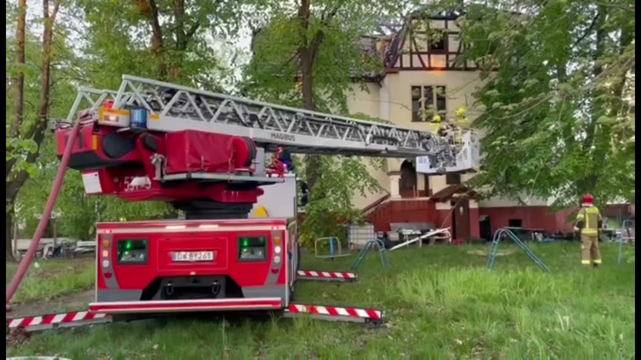 Strażacy z Głogowa, Polkowic oraz okolicznych OSP dogaszają ogień po pożarze ponad stuletniej willi przy ulicy Słowiańskiej w Głogowie. Ogień pojawił się na poddaszu, spłonął drewniany strop. Akcja zaczęła się dzisiaj (11.04) po godzinie 3.00 nad ranem.