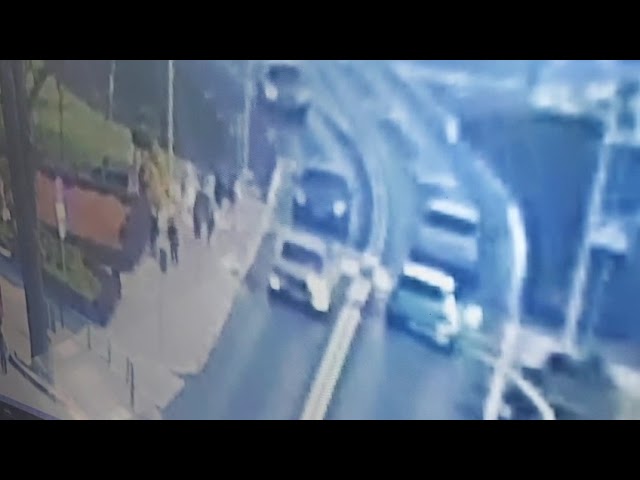 Zdarzenie zostało zarejestrowane przez kamery monitoringu. Na filmie widać przejeżdżające przed wejściem do galerii samochody. W pewnym momencie zatrzymują