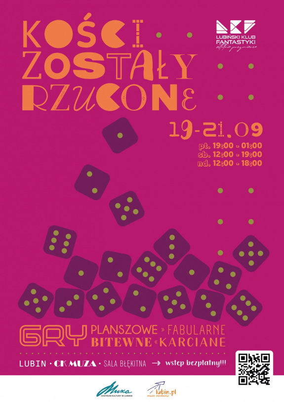 Organizatorami weekendu z grami są Lubiński Klub Fantastyki „Ostatnie Przymierze” oraz Centrum Kultury „Muza” w Lubinie. Wstęp jest wolny.