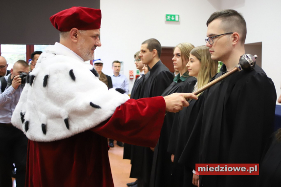 Dyżurny reporter: ![]() - Dlaczego uczelnia głogowska? Dlatego, że robiłam tutaj pierwszy kierunek, byłam bardzo zadowolona, dlatego zdecydowałam się kontynuować również ten sam kierunek tutaj. Zdecydowanie work and learn to jest taki program studiów, gdzie w tygodniu można uczyć się online przez wykłady na e-learningu, a na soboty, piątki pojawiamy się tutaj na ćwiczeniach na uczelni. Jest to zdecydowane ułatwienie w stosunku do innych uczelni - powiedziała Patrycja Bienia z 1. roku drugiego stopnia ekonomia biznesu. - Chciałam tutaj zostać, bo tutaj zaczęłam pracę, a studia na tej uczelni pozwalają po prostu połączyć pracę ze studiami. Nasza uczelnia kształci w kierunku praktycznym, czyli dużo więcej mamy ćwiczeń, dużo więcej zajęć manualnych, przez co dużo lepiej uczymy się zawodu. I to, że uczymy się teorii, bo trzeba ją mieć, ale praktyka jednak w wielu zawodach jest najważniejsza - dodała Weronika Lisiewicz, studentka pielęgniarstwa na stopniu magisterskim. Immatrykulacji dokonał rektor uczelni doktor Jarosław Hermaszewski. - Zawsze inauguracja roku akademickiego jest czymś, co jest szczególne dla uczelni, ponieważ mamy nowych studentów, nowych kandydatów, zawsze z nowym rokiem się wiążą nowe nadzieje, obietnice i stąd dla nas to jest bardzo ważny okres. Należy powiedzieć, że ta rekrutacja jest naprawdę na wyjątkowym poziomie, ponieważ zwiększyliśmy liczbę studentów zrekrutowanych w tym roku prawie o 70% w stosunku do zeszłego roku. To jest, wydaje się, duży sukces. Chcemy się wyróżniać, chcemy być inni, chcemy być praktyczni, chcemy być dla studentów - mówił rektor PANS.
