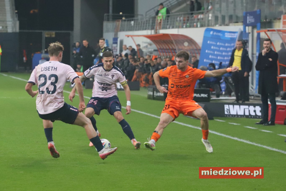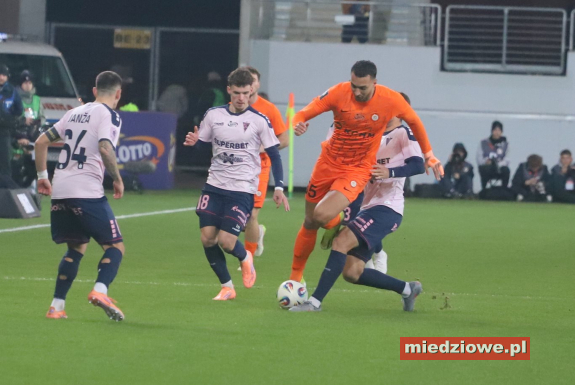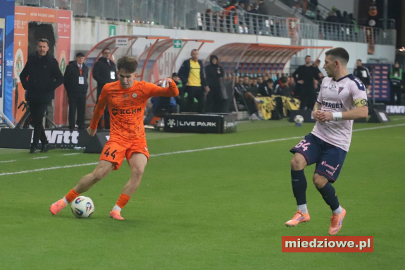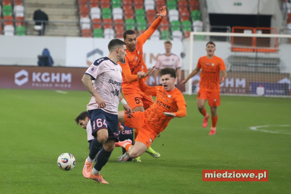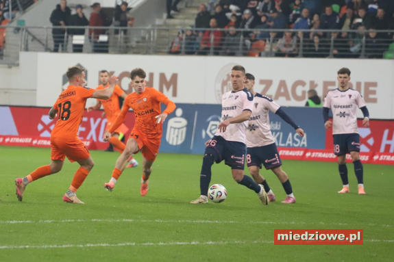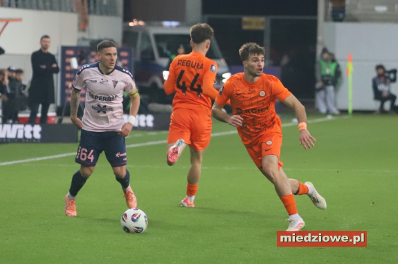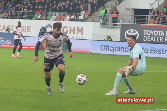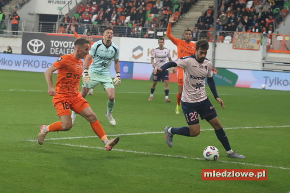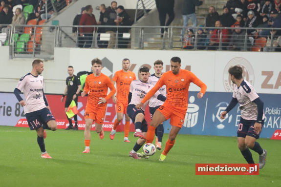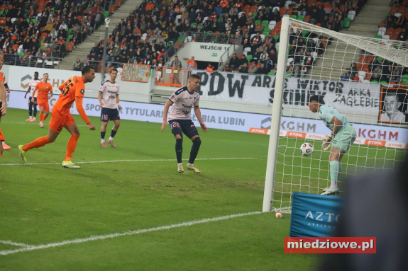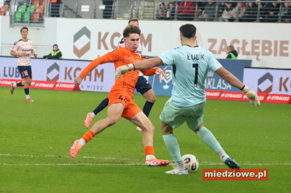 Dyżurny reporter: 667 70 70 60 Spotkanie zaczęło się znakomicie dla gospodarzy. W 13. minucie bramkarz Górnika popełnił fatalny błąd, wypuszczając piłkę z rąk, co natychmiast wykorzystał Leonardo Rocha, zdobywając gola na 1:0. Podobnie jak w poprzednich meczach, po objęciu prowadzenia Miedziowi skupili się na uważnej grze w defensywie. Jasmin Buric, zastępujący kontuzjowanego Dominika Hładuna, kilkukrotnie ratował zespół, notując pewne interwencje. Zaraz po przerwie lubinianie podwyższyli prowadzenie. W 50. minucie Filip Kocaba popisał się efektownym strzałem z woleja zza pola karnego, zaskakując bramkarza Górnika. Chwilę później goście mogli wrócić do gry - w 68. minucie piłka po ich uderzeniu trafiła jednak w poprzeczkę, gdy Burić był poza bramką. Do końca spotkania Zagłębie kontrolowało wydarzenia na boisku, nie pozwalając liderowi tabeli na stworzenie realnego zagrożenia. (fot. Leszek Wspaniały) Miedziowi zasłużenie dopisali trzy punkty i przerwali świetną serię Górnika. Kolejny mecz lubinianie rozegrają 24 listopada w Szczecinie, gdzie zmierzą się z Pogonią.