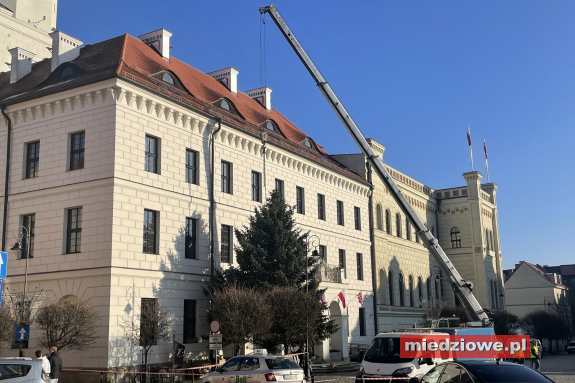 StartGłogów Olbrzymi świerk już stoi przed ratuszem