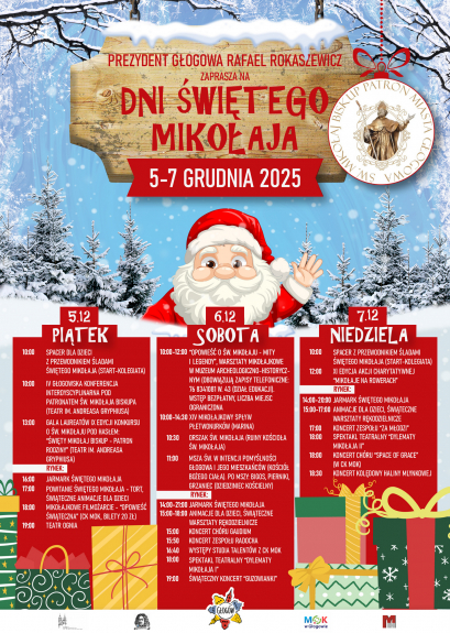 Dyżurny reporter: 667 70 70 60 - Będą koncerty lokalne, ale i zaproszonych gości, a wśród nich zespół Guzowianki i Halina Młynkowa. Oczywiście wszyscy ze świątecznym repertuarem kolędowym. Oprócz tego też w rynku, w teatrze Andreasa Gryphiusa, będą dla dzieci przedstawienia teatralne właśnie związane z tematyką świąteczną i ze świętym Mikołajem. Będą atrakcje w postaci mini lunaparku. do którego co chwilę będziemy losować bilety, aby jak najwięcej osób skorzystało. Oczywiście różnego rodzaju cateringi zewnętrzne, ale także przy współpracy z okolicznymi samorządami koła gospodyń wiejskich, które również będą nas częstować różnymi pysznościami świątecznymi - powiedział prezydent miasta Rafael Rokaszewicz. W piątek o 10:00 rozpocznie się w teatrze konferencja pod patronatem świętego Mikołaja. To jest konferencja historyczna związana z postacią świętego Mikołaja, ale także różnymi wydarzeniami głogowskimi. (fot. Leszek Wspaniały) - W sobotę takim niezwykle ważnym wydarzeniem, bo oczywiście wszyscy kojarzymy Mikołaja z prezentami, ale pamiętajmy, że ten Mikołaj, patron naszego miasta, to dawny biskup, Parafia św. Mikołaja w sposób szczególny obchodzi ten dzień. W związku z tym o 10:30 spod ruin kościoła św. Mikołaja wyruszy tradycyjny już w naszym mieście orszak św. Mikołaja, który około 11:00 dojdzie do kościoła Bożego Ciała i tam odbędzie się uroczysta msza, a po niej na dziedzińcu kościoła również parafia przygotowała atrakcje kulinarne dla mieszkańców. Będzie grzaniec, bigos i pierniki - dodał prezydent.