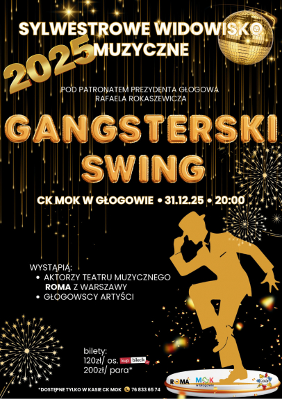 Dyżurny reporter: 667 70 70 60 - Gangsterski Swing, czyli przeboje musicalowe w bardzo gangsterskiej odsłonie. Ze wszystkich tych musicali, które państwo doskonale znacie, na przykład Chicago, gdzie ci tacy troszkę bardziej źli śpiewają, to są wielkie przeboje, które pojawiają się od wielu, wielu lat na ekranach, na scenach, w radiach i teraz będą wyśpiewywane. Robimy to z włączeniem aktorów Teatru Roma, którzy będą taką siłą przewodnią, jeżeli chodzi o wokal - powiedział Bartłomiej Adamczak, dyrektor MOK-u. Dokładnie całość nazywa się „Gangsterski Swing, czyli zabawa u Ślepego Maxa. Będzie to przegląd gangsterskich zabaw, klimatów lat 20-tych i 30-tych ubiegłego wiek. - Te historie się przeplatają, to jest i warszawska Praga z takimi klimatami. Ponadto Berlin, Londyn, Paryż i Nowy Jork oczywiście. Wszystko dopasowane do klimatów tamtych miejsc, w pięknej muzyczności, w doskonałej oprawie wizualnej, z cudownymi światłami, ze świetnymi wokalami. Zatem opowiemy kilka historii gangsterskich bardzo przebojowo. Propozycja przygotowana została na godzinę 20.00. Chodzi o to, żebyśmy mieli szansę na bardzo fajne wejście w ten sylwestrowy wieczór. Kończona toastem wspólnie z prezydentem miasta - zakończył B. Adamczak. Ostatnie wejściówki do nabycia na kupbilecik.pl i w kasie CK MOK.