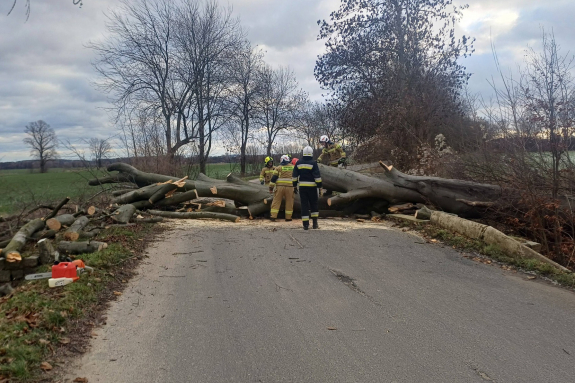 Na miejsce zadysponowano zastępy z Jednostki Ratowniczo-Gaśniczej oraz ochotnicze straże pożarne z Kromolina i Brzegu Głogowskiego. Strażacy szybko usunęli drzewo z jezdni i przywrócili przejezdność drogi.