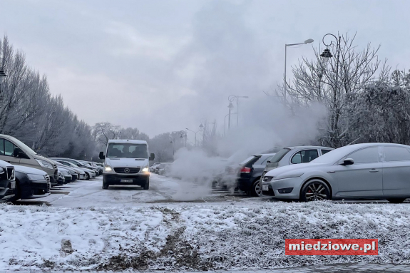 Awaria sieci ciepłowniczej w Głogowie w rejonie ulicy Słodowej na Starym Mieście. Jej skutkiem jest obfite parowanie z komory ciepłowniczej na parkingu. Ze względu na obecne warunki atmosferyczne Wojewódzkie Przedsiębiorstwo Energetyki Cieplnej w Legnicy nie chce pozbawiać mieszkańców tej części miasta dostaw ciepła.