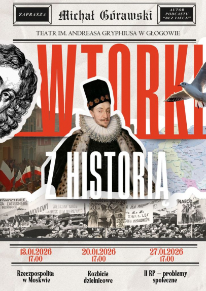 Po przerwie świąteczno-noworocznej wracają w Głogowie „Wtorki z historią”. Już jutro w teatrze pierwsze styczniowe spotkanie. Na godzinę 17:00 prowadzący cykl Michał Górawski zaprasza na spotkanie, na którym opowie o Rzeczpospolitej w Moskwie.
