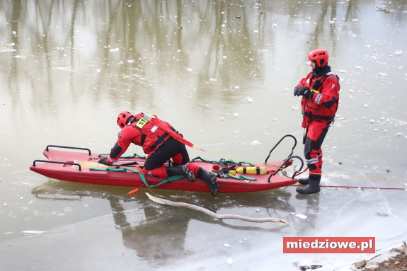 Dyżurny reporter: 667 70 70 60 - Ćwiczymy na zamarzniętym akwenie. Korzystamy m.in. z sań lodowych czy innego sprzętu, który jest na wyposażeniu jednostki ratowniczo-gaśniczej. Ćwiczenia te polegają na próbie podjęcia potencjalnych osób poszkodowanych, które weszły na zamarzniętą zatokę i pod nimi załamał się lód - mówił młodszy brygadier Mirosław Durka z Komendy Powiatowej Państwowej Straży Pożarnej w Głogowie. Wczoraj w środkowej części zatoki pokrywa lodowa przekraczała 10cm, a przy brzegu warstwa lodu była jeszcze grubsza. Niemniej jednak strażacy odradzają mieszkańcom wchodzenie na lód na otwartych akwenach. - Jeśli już się ktoś na to decyduje, to niech nie robi tego w pojedynkę. Zresztą nie tylko zarwanie się lodu pod nami może być niebezpieczne. Sam upadek na zamarzniętą taflę może skutkować jakąś kontuzja czy urazem, która spowoduje, że nie będziemy mogli sami się wydostać na brzeg - przestrzega M. Durka. Strażacy radzą, aby w razie załamania się lodu zachować spokój. Wezwać służby ratunkowe, a do czasu ich przybycia położyć się szeroko rozkładając ręce i czołgać się w stronę brzegu.