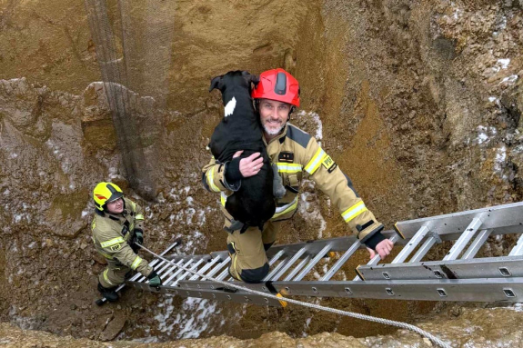mocno oblodzony - powiedział Grzegorz Makowiecki z OSP Gaworzyce. Jeden ze strażaków zszedł po drabinie do wystraszonego czworonoga. - Ratownik zdjął rękawice, dał poczuć zapach człowieka i uspokoił psa - dodaje G. Makowiecki. Następnie uratowanego zwierzaka przejął kolejny strażak i po drabinie wyniósł go z wykopu.