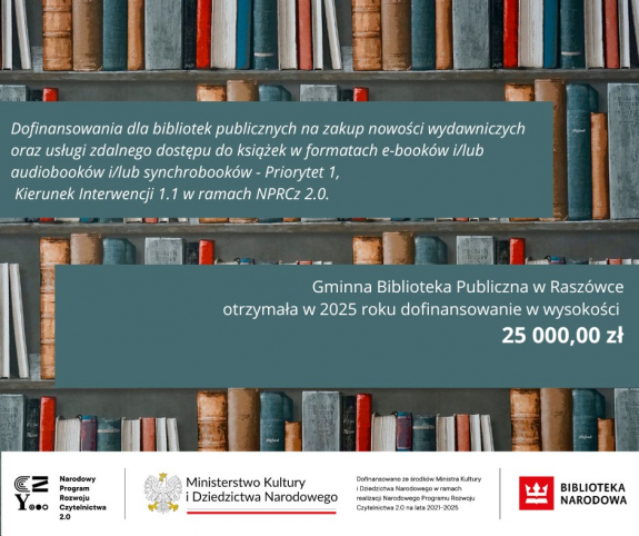 Półki w gminnych bibliotekach dosłownie uginają się pod ciężarem nowości. Wszystko dzięki Gminnej Bibliotece Publicznej w Raszówce, do której trafił prawdziwy zastrzyk literackiej energii. Placówka otrzymała 25 tys. zł dofinansowania na zakup nowych książek. To setki świeżych tytułów, które już czekają na czytelników.