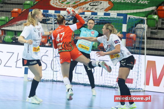Dyżurny reporter: 667 70 70 60 Miedziowe zaczęły od 2:0. Potem prowadziły 5:2, ale ambitne przyjezdne potrafiły doprowadzić do remisu 12:12 w 22 min. Końcówka tej odsłony należała do miejscowych, które na przerwę schodziły z prowadzeniem 17:15. Po wznowieniu lepiej zaczęły grać Dunki. W 41 min. objęły prowadzenie 22:21, a po chwili odskoczyły na 25:21. Tych strat mistrzynie Polski nie zdołały już odrobić i przegrały 26:32. - Te mecze tak wyglądają. Walczymy, walczymy, a później gdzieś zabraknie koncentracji w obronie, zaczynają się nieskuteczne rzuty, a na tym poziomie przeciwnik wykorzystuje to praktycznie w stu procentach. Później już gonienie wyniku, czyli loteria. Może ten wynik nie jest adekwatny, bo chyba aż na tyle nie byliśmy dzisiaj gorsi na różnicę sześciu bramek. Natomiast błędy podań, niecelne rzuty, i to się dzieje tak w krótkim odstępie czasu, taka akumulacja jednak kosztuje wynik jeżeli chodzi o grę z dobrym przeciwnikiem. Plusem jest to, że w końcu prawie wszystkie byłyśmy w protokole wpisane i powoli zaczynają po kontuzjach wracać Marianne i Patrycja - powiedziała trener Bożena Karkut. Bramki dla lubinianek zdobyły: Fernandes 7 (MVP meczu), Grzyb, Jakubowska i Fraga po 3, Janas, Kochaniak i Matieli po 2 oraz Cavo, Zima, Cesareo i Drabik po 1. - W końcówce straciłyśmy głupie bramki poprzez nasze straty i niecelne rzuty, więc na pewno nie do końca ten wynik taki powinien być. Myślę, że oscylować powinien koło dwóch trafień i różnicy maksymalnie, no ale to jest tylko sport. My chciałyśmy szybko odrobić straty w końcówce, ale przez błędy końcówka jest niezadowalająca dla nas - powiedziała kołowa Joanna Drabik. 21 lutego miedziowe zakończą tegoroczną przygodę z europejskimi pucharami wyjazdowym meczem z Coroną Brasov. Zanim jednak udadzą się do Rumunii, to już w środę 18 lutego o 17:00 w hali RCS w meczu Pucharu Polski podejmą KPR Kobierzyce.