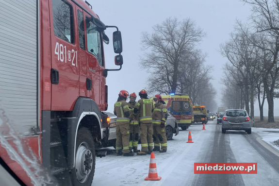 Ściągnijcie nogę z gazu! Opady śniegu i ośnieżone drogi sprawiają, że warunki do jazdy są bardzo trudne. Niestety, już doszło do pierwszych wypadków. Uwaga kierowcy! Na drodze krajowej nr 36 na trasie z Lubina do Ścinawy, na wysokości skrzyżowania na Księginice, doszło do zderzenia dwóch samochodów.
