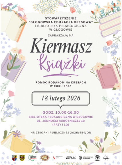 Kiermasz zaplanowano na środę w 18 lutego od 10:00 do 16:00 w bibliotece pedagogicznej w Głogowie. - Na stoiskach nie zabraknie literatury historycznej, powieści, reportaży, książek dla dzieci i młodzieży, a także albumów czy publikacji regionalnych - mówiła przedstawicielka stowarzyszenia.