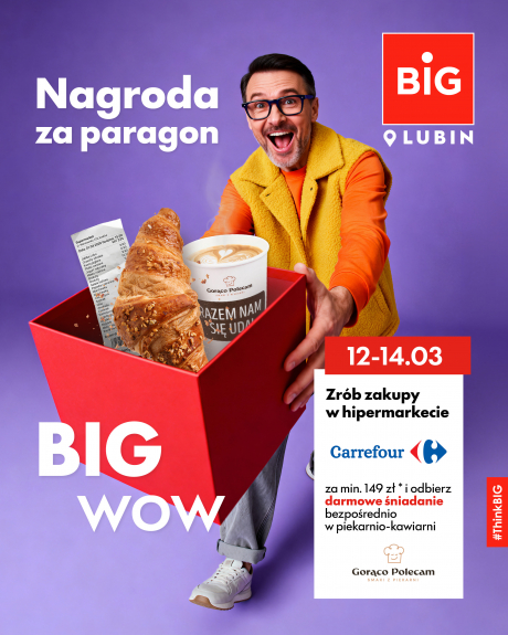 Akcja została przygotowana z myślą o zwiększeniu atrakcyjności zakupów oraz nagrodzeniu klientów odwiedzających BIG Lubin. To także okazja, aby rozpocząć dzień od smacznego śniadania po zakupach.