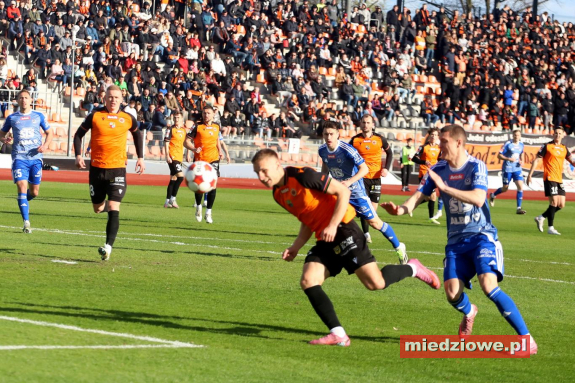 Dyżurny reporter: 667 70 70 60 Była to kolejna niezwykle istotna konfrontacja dla Głogowian. Ruch to jeden z bezpośrednich rywali w walce o awans do ekstraklasy. W rundzie jesiennej w Chorzowie górą była drużyna ze Śląska, wygrywając wówczas 2:1. Goście przez znaczną część meczu przeważali, jednak długo nie potrafili przełożyć optycznej przewagi na zdobycz bramkową. Chrobremu ta sztuka udała się w 31. minucie - Kozajda na raty umieścił piłkę w siatce, wyprowadzając swoją drużynę na prowadzenie. Ruch nie ustawał w atakach, co w drugiej połowie sprowokowało fatalną pomyłkę w szeregach obronnych Chrobrego. Jakub Griè pod wpływem pressingu rywali próbował podać do Arndta, jednak zrobił to tak nieszczęśliwie, że wystawił piłkę piłkarzowi gości, który bezlitośnie skorzystał z prezentu. Po wyrównaniu Głogowianie śmielej ruszyli do przodu. Po jednym z rzutów rożnych piłka trafiła nawet do siatki przyjezdnych, ale sędzia dopatrzył się faulu i anulował trafienie. Chorzowianie również byli bliscy przechylenia szali zwycięstwa na swoją korzyść - najpierw futbolówka obiła słupek, a następnie efektowną interwencją popisał się Arndt. Mimo walki do ostatnich sekund, wynik nie uległ już zmianie. Statystyki wyraźnie przemawiały za Ruchem, który oddał aż 25 strzałów (w tym 6 celnych). Z kolei gospodarze uderzali na bramkę rywala 5 razy, z czego dwa uderzenia były celne. W najbliższą sobotę (11.04) Chrobry zagra na wyjeździe z przedostatnim w tabeli Górnikiem Łęczna.