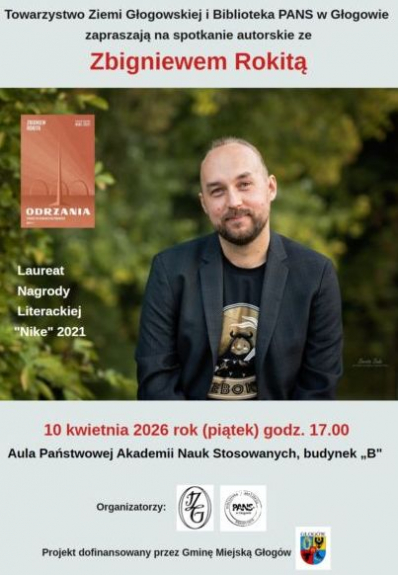 Dyżurny reporter: 667 70 70 60 Zbigniew Rokita to utalentowany i utytułowany pisarz, reportażysta, autor sztuk teatralnych i dziennikarz młodego pokolenia. - Jest laureatem wielu prestiżowych nagród, wyróżnień i nominacji. W 2021 roku za książkę „Kajś. Opowieść o Górnym Śląsku" otrzymał podwójną Nagrodę Literacką „Nike" zarówno decyzją jury i czytelników. W 2024 roku kolejna książka „Odrzania. Podróż po Ziemiach Odzyskanych" otrzymała nagrodę główną w konkursie im. Anatola Omelaniuka na najlepszą książkę regionalistyczną przyznaną przez jury - powiedział Dariusz Czaja z TZG. Spotkanie z Z. Rokitą rozpocznie się 10 kwietnia o 17:00 w auli PANS w budynku B. Spotkanie i rozmowę o regionalizmie na Śląsku, Dolnym Śląsku, Ziemiach Zachodnich i Północnych poprowadzi gościnnie prezes Dolnośląskiego Towarzystwa Regionalnego Izolda Topp-Wójtowicz z Uniwersytetu Wrocławskiego. - Spotkanie ze Zbigniewem Rokitą będzie prologiem IV Głogowskiego Festiwalu Historycznego, który odbędzie się w dniach 11-12 kwietna - zakończył D. Czaja.