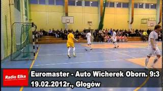 ostatni. W 9 min. przyjezdni odpowiedzieli golem Antczaka i odżyły nadzieje Wicherka na korzystny rezultat. Po kwadransie mogło być 3:1, ale Karol Bednarowski nie wykorzystał rzutu karnego. Jeszcze jednak przed przerwą gole dla Euromastera strzelili Szuszkiewicz i Bednarowski. Po przerwie popularny „Benia” kontynuował festiwal strzelecki, a jako następni do bramki gości trafiali: Żmudziński, Trznadel i Szuszkiewicz. Goście strzelili w 33 min. na 8:2, a w 38 min. swoją trzecią bramkę w tym spotkaniu strzelił Bednarowski. - Cieszę się, że wygraliśmy tak wysoko. Mecz jednak wcale nie należał do łatwych. Rywal pokazał, że potrafi grać w futsal. Szkoda, że nie wykorzystałem karnego, ale tylko do samego siebie mogę mieć pretensje - mówił po meczu K. Bednarowski.
