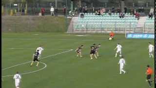 defensywy. W 9. min. gry polkowiczanie dopięli swego. Po składnej akcji Grzegorz Kuświk z najbliższej odległości precyzyjnym strzałem głową pokonał Sabelę. Kilkanaście minut później mogło być już 2:0, ale po strzeleniu gola, sędzia liniowy podniósł chorągiewkę uznając spalonego. Podrażnieni piłkarze GKS-u zaczęli coraz częściej nękać bramkę polkowiczan. W 36. min. Kazimierczaka pokonał Zachara i było 1:1.