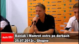 Szkoleniowiec Miedzi pogratulował swojej drużynie zwycięstwa, bo jak stwierdził - legniczanie byli zespołem zdecydowanie lepszym. Ripostował natychmiast szkoleniowiec Chrobrego Ireneusz Mamrot. - Zostałem w tej chwili obrażony. Przez 12 lat mojej pracy nigdy nie namawiałem zawodników, żeby kopali przeciwnika. Wręcz przeciwnie, karałem za takie postępowanie. Na ławce nie było żadnej takiej sugestii ani prowokacji. Jestem trenerem, a nie rzeźnikiem. To, że Miedzi w drugiej połowie praktyczne nie było na boisku, to nie jest moim problemem. Trzeba umieć to ocenić. Gratuluję Miedzi wygranej i życzę powodzenia w kolejnej rundzie PP - podsumował trener głogowskiej drużyny.
