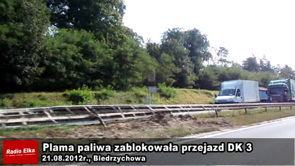 Plama oleju uniemożliwia przejazd drogą krajową nr 3 z Lubina do Polkowic. Policja wyznaczyła objazdy i kieruje ruchem. Do zdarzenia doszło, gdy ciężarowa scania przebiła barierkę energochłonną i uszkodziła jeden ze zbiorników paliwa.
