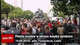 Około sto osób, byłych i obecnych uczniów Salezjańskiego Gimnazjum w Lubinie, zorganizowało dziś pikietę w obronie dyrektora szkoły, księdza Marcina Kozyry. Gimnazjaliści uważają, że podczas otrzęsin nie doszło do żadnych nieprzyzwoitych sytuacji, a całe zamieszanie, o którym dziś mówi cała Polska, nazywają manipulacją mediów.