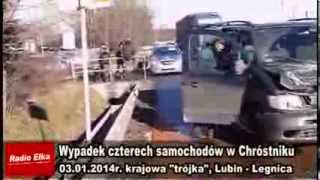 Dwanaście osób zostało poszkodowanych, z czego trzy trafiły do szpitala po wypadku na drodze krajowej nr 3 w Chróstniku. Po godzinie 11-tej doszło tam do zderzenia czterech aut: fiata ducato, mercedesa vito, hyundai accent i seata altea. Kilkadziesiąt minut później w centrum Lubina kierujący fiatem punto potrącił na pasach starszego mężczyznę.
