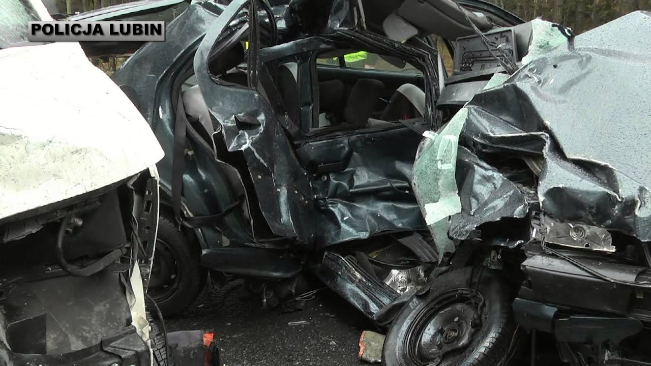 Do tragedii doszło po godz. 12. - W tym zdarzeniu drogowym wzięły udział trzy pojazdy - osobowy marki peugeot i dwa busy - volkswagen oraz mercedes. Niestety w wyniku zderzenia śmierć na miejscu poniosła kobieta kierująca peugeotem. Do lubińskiego szpitala przewieziono dwie
