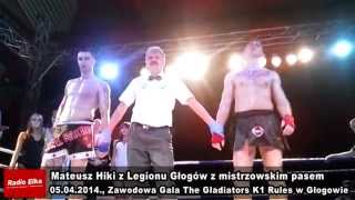 Mateusz Hiki z Legionu Głogów zdobył pas zawodowego mistrza Polski w kickboxingu w formule muay thai. Po zaciętej i wyczerpującej walce pokonał Michała Grzesiaka z Odolanowa. Pojedynek głogowianina był walką wieczoru podczas czwartej zawodowej gali The Gladiators K1 Rules, która została zorganizowana w hali widowiskowo-sportowej w Głogowie.