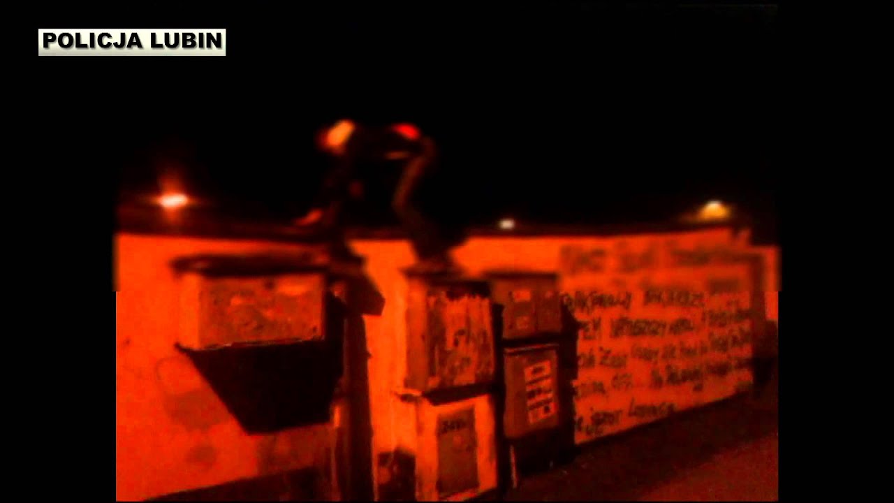 Okazało się, że nie tylko skakali po dachach garaży, ale również przewrócili pojemnik z odzieżą, a obok leżała wyłamana skrzynka energetyczna - złącze kablowe z szafką pomiarową. Sprawca tego zniszczenia sam uwiecznił swoje zachowanie na własnym telefonie komórkowym. Straty właściciel skrzynki energetycznej oszacował na tysiąc złotych - informuje Sylwia Serafin z lubińskiej komendy.